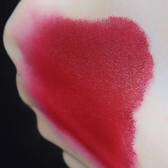 这支的显色度很高,基本就是一笔到位,完全不给你薄涂的机会,而且我看网上有人说这支带紫调,实际不是,它就是非常非常重的玫调,晕开抿唇也是玫红色,很高贵复古,白皮提气场必备!