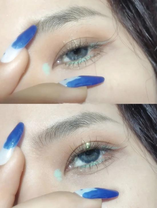哑光色很柔糯不干涩,闪片色像他家高光一样优秀,爆闪得像是有什么补光灯的程度了,即使在昏暗的灯光下也能一眼看到你。画法嘛,发挥想象,换个闪片就换种感觉,绿紫撞色配上彩色眼线不要太吸睛↓