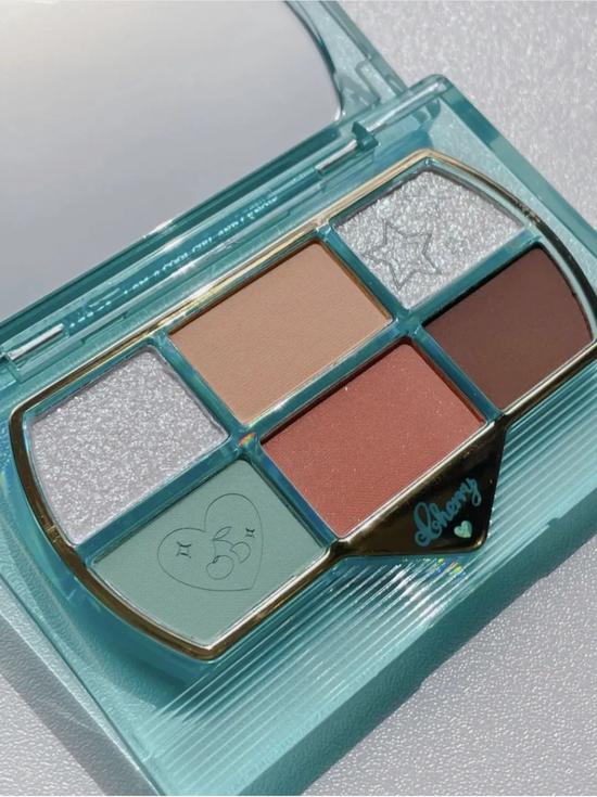 配色也很实用。最上面的牛奶粉和哑光白可以提亮面中、画卧蚕。剩下三个不同深度的哑光色能轻松打造一个粉嫩不显肿眼妆。再点缀上亮片色就会很出彩。