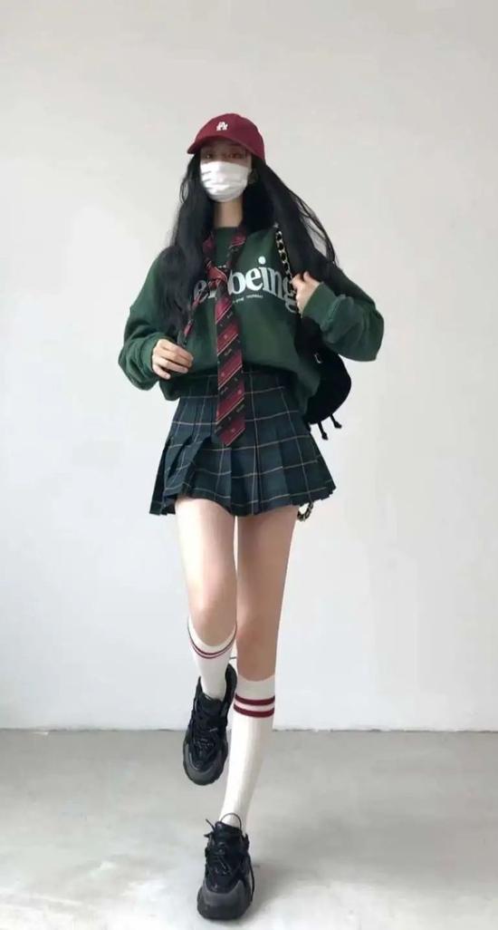 同样是穿格纹百褶格裙,甚至都有领带和小腿袜,和卫衣这类偏休闲的单品组合就是复古的美式学院风。配上正式一点的毛衣、大衣就成了英式优雅的代言人,霍格沃茨开学典礼必备!