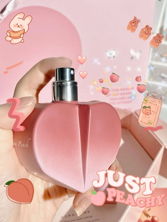 香水瓶身是一个立体渐变的爱心桃子造型,磨砂的质感特别高级,拿在手上也分量满满。