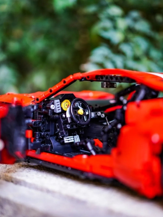 积木赛车是按照1:8的比例还原真车,高度仿真了车身外观和车的内饰细节,是一个非常具有挑战性的赛车模型,耐玩度特别高,和男朋友一起拼完成就感爆棚!