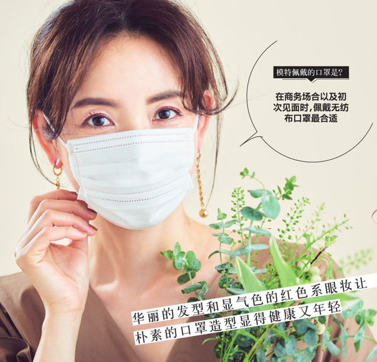 戴着医用无纺布口罩,却不在发型上下功夫就会显得整体造型过于朴素。尝试用华丽的发型和显气色的红色系眼妆来打造出健康活力的感觉吧。