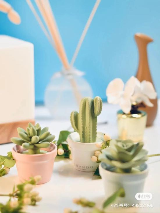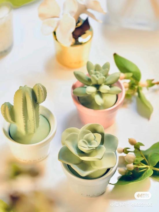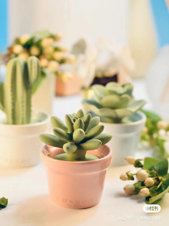 Chando主打的是陶瓷香薰,用瓷土打造出精美的造型,既可以当做摆件又可以当做扩香,你以为这是一盆多肉,其实人家是香薰啦~