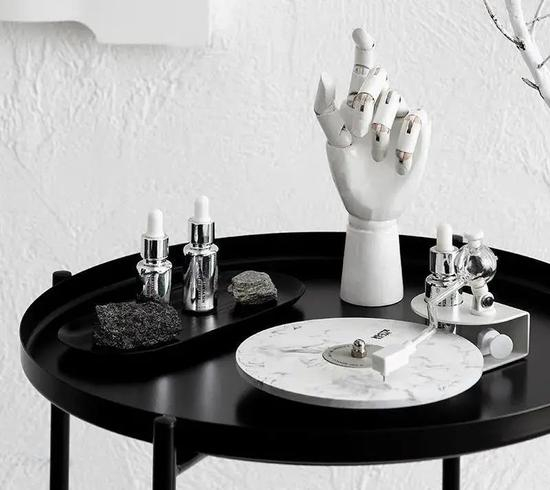 单唱片机不稀奇,可是当它变成一个扩香器,从滴香到香气氲开的过程就变成了充满仪式感的享受。在滴管装置内滴入精油,把唱头放在喜欢的位置,按下侧面旋转按钮,石盘唱片的转动会将东方青草调的香气和舒缓的音乐带到房间的每一个角落,冷淡风的造型设计,不用的时候还可以当做摆件装饰,这谁能不爱呢!