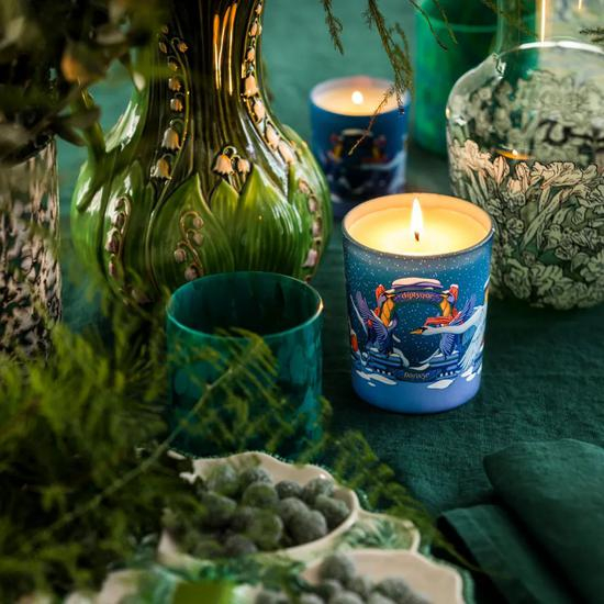 今年,diptyque与艺术家Ugo Gattoni合作的系列冬日限定版香氛蜡烛就很适合作为圣诞礼物。蓝色款幻羽琥珀是柑橘调的暖香,描绘着优雅天鹅的磨砂玻璃壁里,包裹着明媚橙香,还夹杂着肉桂与生姜的气息,再配上会被热气驱动自转的限定款奇幻光影烛罩,随着烛火的舞动,光影流转,你的心意成为了她可以感受和触摸的珍藏氛围。