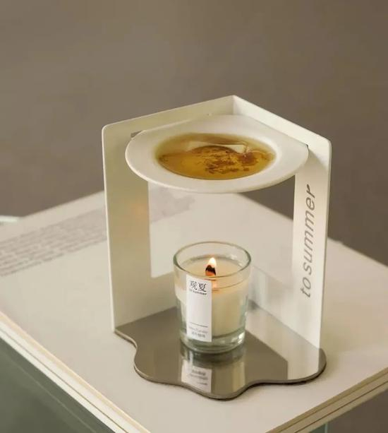 “当归”一名意为“是时候脱开繁忙,回归内心的世外桃源”,它不同于一般的香薰炉,而是带着东方摩登感的器物造型,用蜡烛的温火烹煮上层的精油蜡片,以此达到扩散香气的目的。每次煮香,掰开一块巧克力形状的蜡片,轻轻投入白瓷盘中,看着它渐渐融为精油,比起简单地滴入精油多了仪式感和趣味性。