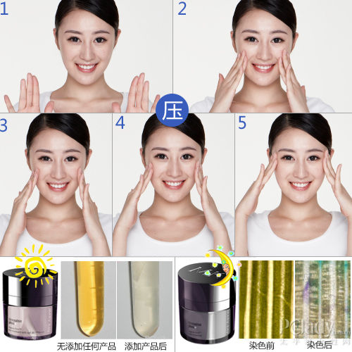 拍:一样从下巴往上至眼下区域,以指腹由内往外横向轻拍,将堵塞的淋巴液与沉积的毒素彻底拍散。按摩中段:使用日霜、晚霜,压走水分和毒素