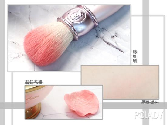 公主般的高级羞涩:这款腮红的着色力没有特别的强,上妆效果是淡淡的自然好气色。花瓣轻盈柔软,仿佛轻轻散落于脸颊上,而且颜色服帖通透,没有明显的粉感,妆感细致。除了大家闺秀的外貌和高级的妆感,作为一个腮红还有特别的芬香。玫瑰香气跟一般的香精化学气味不一样,这个腮红发出的香气更加的淡雅自然,让我想起了清晨的新鲜摘取的玫瑰香味。拥有了这个,早晨看到她的美貌、闻到她的香气、看到用她的上脸妆感,没错,你将会成为公主本人!