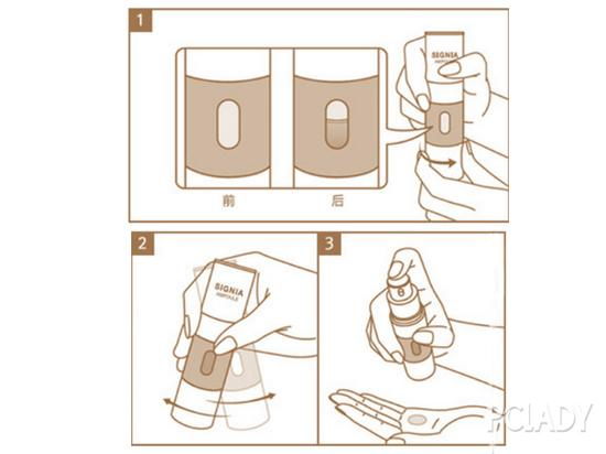 握住产品容器下端,右转容器,直至无法转动为止,然后确认透明口处的内容物是否已被分离开。左右摇晃容器,直至内容物颜色发生变化时为止,从乳白色变成偏黄的米黄色,一般需要10秒左右能使其充分融合。