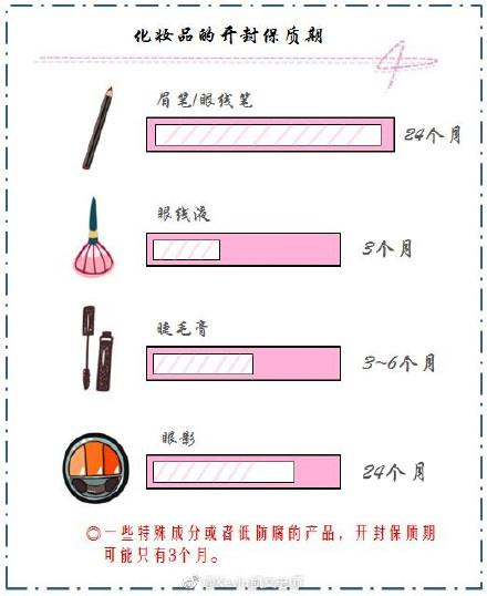 当然如果现在找不到外包装了也可以看看下边的产品保质期参考,下一次再开封新的单品可以用胶条贴个日期标记或者在手机上做个备注,可不要好几年的东西一起混着用了!