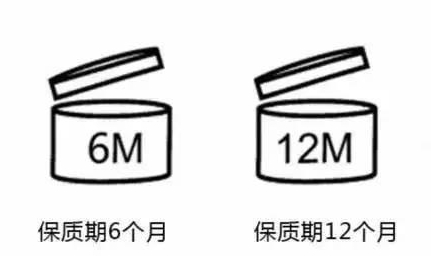 一般化妆品不管是在外包装还是在瓶身上都会有一个开盖的标识,里边的6M和12M分别代表开封后多少个月(Month缩写M)后失效,所以不要以为开封以后不用,一直等到最后的保质期,当过了开封后的日期,产品内在的活性也大大减小,作用也可以说是微乎其微了。