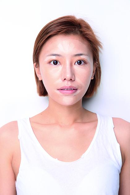 在手背轻轻敲打,除去多余粉质,于鼻翼两侧的“E”字区域涂抹,旨在“隐形”泪沟、印第安纹。