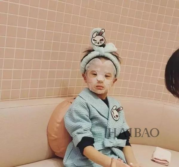 直戳大众萌点的是这里一切用品都是mini的,小小的粉扑、袖珍的指甲油、兔子发带、卡通包装的口红,一切都是为儿童准备的。看着穿上粉色浴袍带上兔耳朵发带的这群小可爱们,不少网友表示心都酥了。