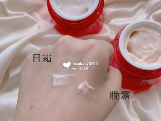 日霜有点像奶油冰淇淋,晚霜是像果冻一样,但两款吸收都很快,肤感很棒,不会有糊一脸的感觉,而且石榴的香味就很甜甜的很想尝一下哈哈哈。