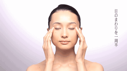 Step7:从眼头开始,使用无名指指腹在上下眼帘进行按压至眼尾。
