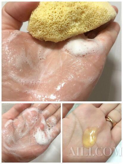 一点水洗出的泡沫就很绵密,而且非常好冲洗,不会有假滑的现象出现。内含磨砂颗粒,但是揉出泡沫后就会消失,完全不会给肌肤造成负担。少量的彩妆也可以卸除,洗完很干净很舒服~