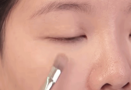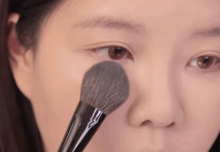 稍稍远离眼周,以斜线的方式刷,使用刷子向两侧刷开,涂得时候不要太靠近内眼睑;
