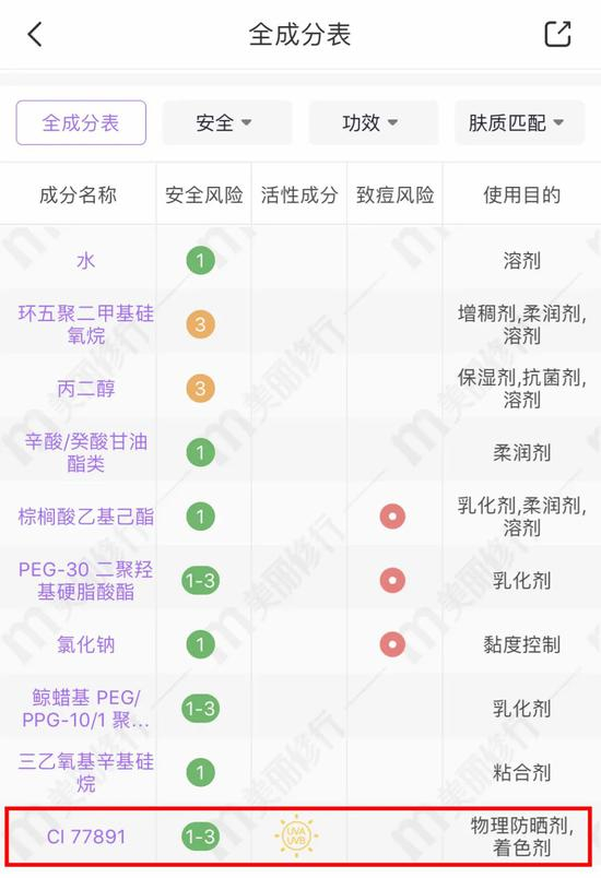 那就指望它防晒吧,对不起,唯一的一个物理防晒剂还是排名最后的,顶多是作为一个着色剂的功能。(所以这也是为什么喷上会变白,一洗就没了)