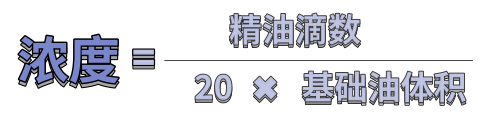 精油需要加基础油的道理明白了,接下来就到具体的配比教学啦。为了方便大噶更好的理解,我列了一个公式,想要什么浓度的精油,把数值代入进去就阔以啦~