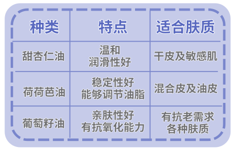 小编说的要加的油指的就是基础油了,通过压榨提取植物的种子或者果实,能保留植物中的各种维生素、矿物质,为皮肤补充油脂,提供必要的防护。不同植物压榨出来的基础油都有着各自的特点,大噶可以根据肤质来进行挑选。