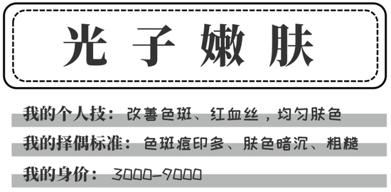 我最大的优点就是很好追,你只要花一点点钱就可以搞定。不管是美容院还是医院,你都能找到我。在正常情况下不会在你的脸上留下伤口,不是渣男!