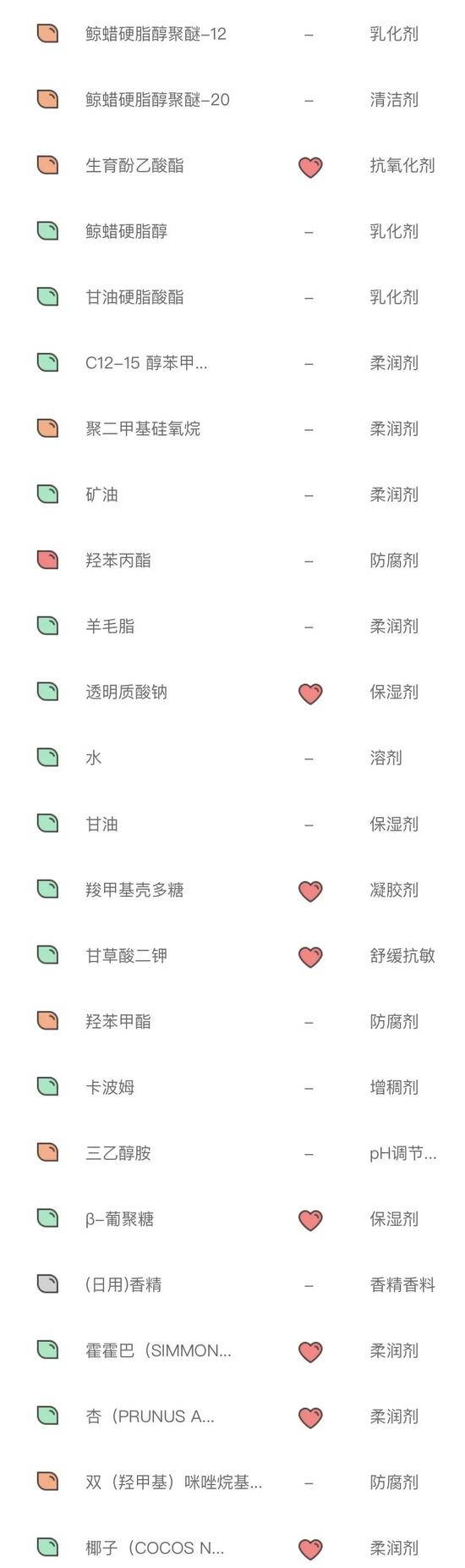 面霜以大量封闭性的乳化剂为主,除此之外添加了少量的VE和透明质酸钠,整体看下来就是马马虎虎的样子。