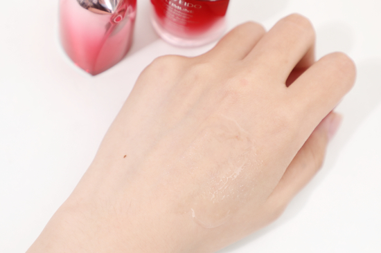它的质地是蛋清状,流动性很好,上脸很轻薄,抹开之后就是水状,绝对是油皮也会喜欢的清爽肤感。