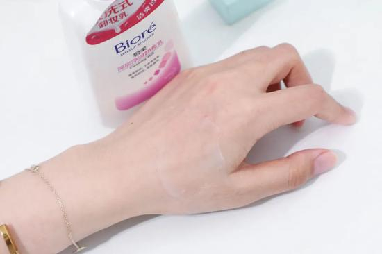 它是乳液状,流动性很好,干手干脸使用,然后轻柔地按摩,用水乳化后再按摩几下,最后清洗干净就好啦。