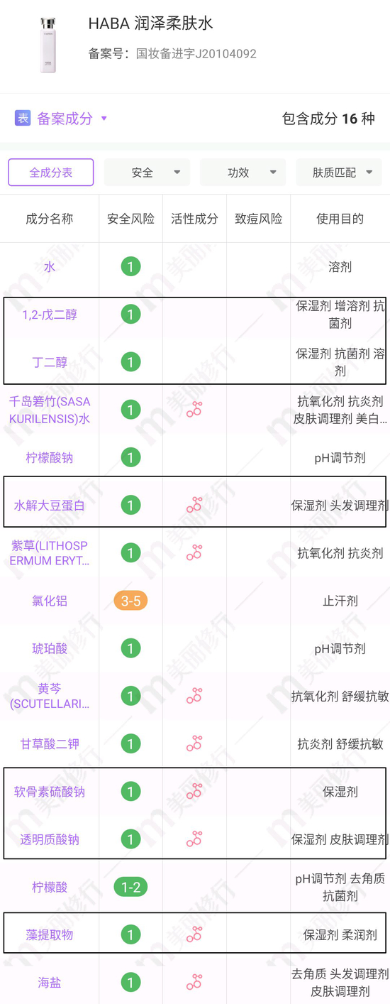从成分上来看,柔肤水的主力军就是保湿剂,丁二醇、甘油、1,2-戊二醇、透明质酸钠都是它的座上宾,也正因如此,柔肤水在功效性上不大占优势,不过俗话说得好:保湿是护肤的基础,把基础打好比啥都强。