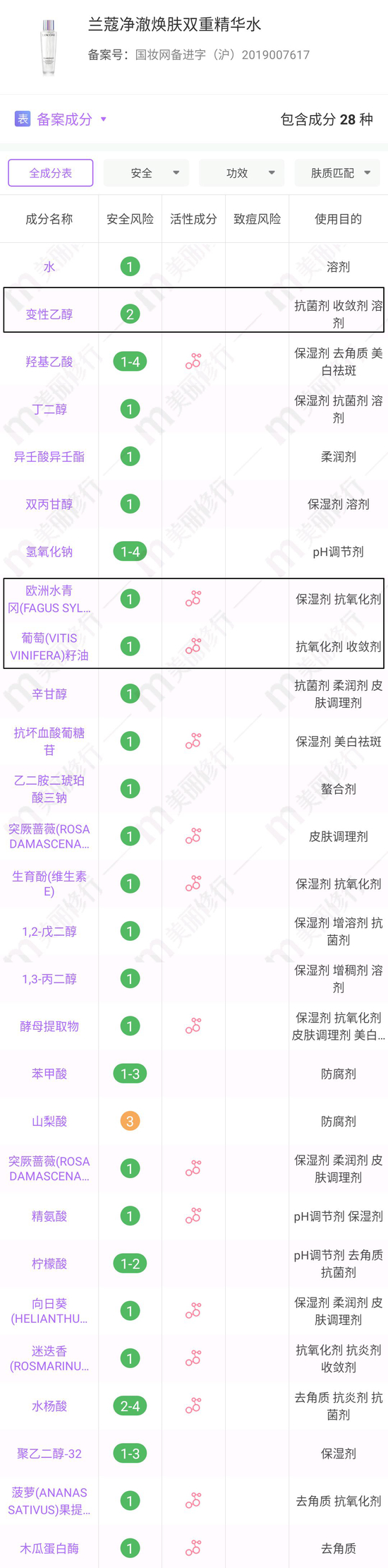 官方主打的榉木芽精粹其实就是成分表中的“欧洲水青冈提取物”,它不仅能做到抗氧化,对细胞角质层活性还有很好的促进作用,能够帮助老废角质更新迭代,旧的走了新的就来了,皮肤自然就变好了~