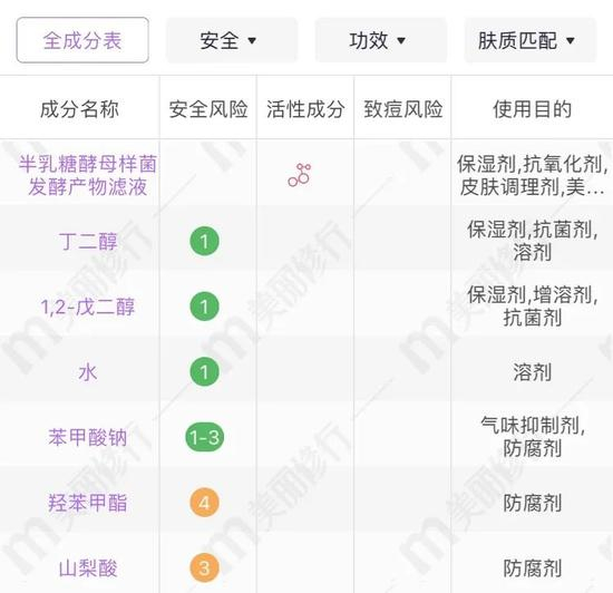 配方中添加的大部分都是可以保湿的物质,辅助蜂王浆、积雪草和生育酚乙酸酯等抗氧化成分,水分值提高的同时还能修护皮肤敏感泛红等问题,干燥季节用它可以给皮肤满满的安全感~