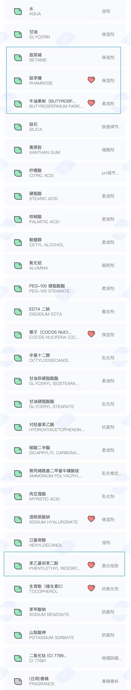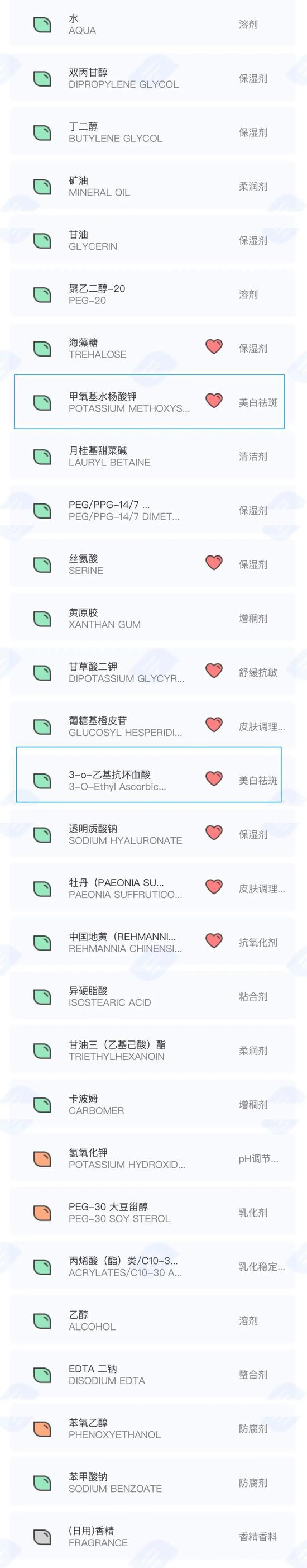 它添加了欧莱雅专研成分377,对于美白这件事情它可是认真的!所以想要提亮肤色、淡化痘印斑点的宝贝们可以入手试试。而且另外也有鼠李糖、甜菜碱等保湿成分,美白保湿两不误。