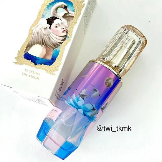 初次见面,请多多关照,我是资生堂家族另一分支“cpb”,同献新衣华服,此为圣诞限定包装,瓶身加入了天鹅湖的元素,栩栩如生的天鹅与蓝莲相映,生动极了,而且我的瓶身还能折射出五彩斑斓的颜色,可谓仙子本仙。