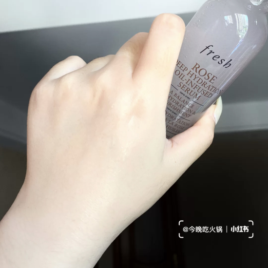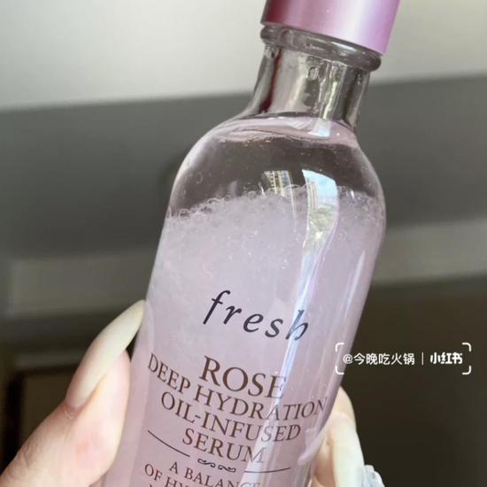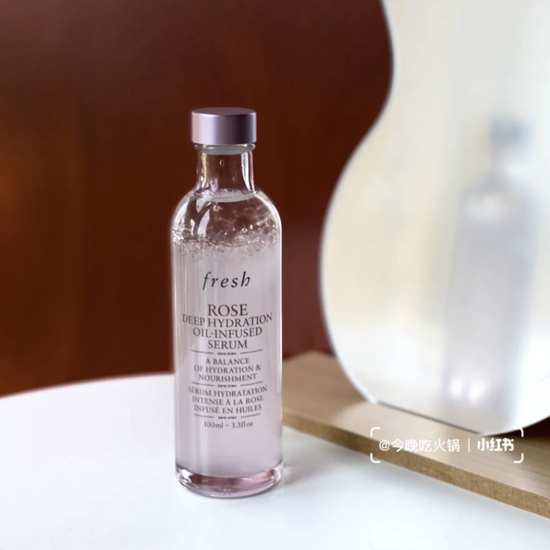 这款是今年fresh新出的精华水,里面主要成分是角鲨浣、玫瑰花水、玫瑰花油、山茶花油、玫瑰果油,它们不仅可以滋润我们干燥的皮肤,还可以保护肌肤的屏障,用完我就真·玫瑰·女孩。