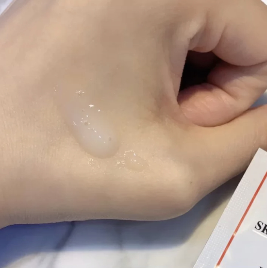 质地是很清爽的乳液状,流动性超级棒,在脸上抹开后立马就吸收了,一点都没有不舒服的黏腻感,后续用什么护肤品也不会有负担。