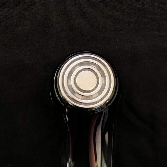 仪器共有两档,RF低档和RF高档,可以根据自己皮肤的耐受性调节。而且在仪器logo的正上方,有一个指示灯,它的作用是当皮肤到达一定温度后,便会亮起橙色,随后发出滴滴的提示音。收到这个信号后,就可以换部位按摩啦。