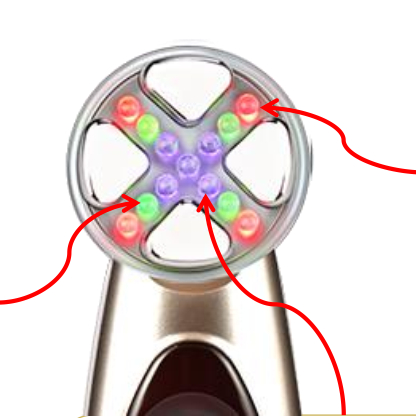 打开美容仪时,可以看到有三种光亮起,红色光、蓝色光以及绿色光。红色光则是促进胶原蛋白新生;蓝色光可以抑制皮脂分泌,从而改善痘痘肌;绿色光则起到了抑制黑色素、提亮肤色的功效。