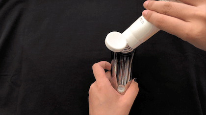 需要注意的是,为保证凝胶的洁净或者是避免因手滑而引起美容仪的滑落,需要直接将凝胶挤在电极头的中央。