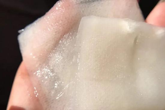 膜布就是那种日式面膜很喜欢的带有一点点厚度的膜布,上脸与肌肤的贴合度很高,而且边边角角的位置也能照顾得到,敷完脸水水当当,到了第二天也是很舒爽。