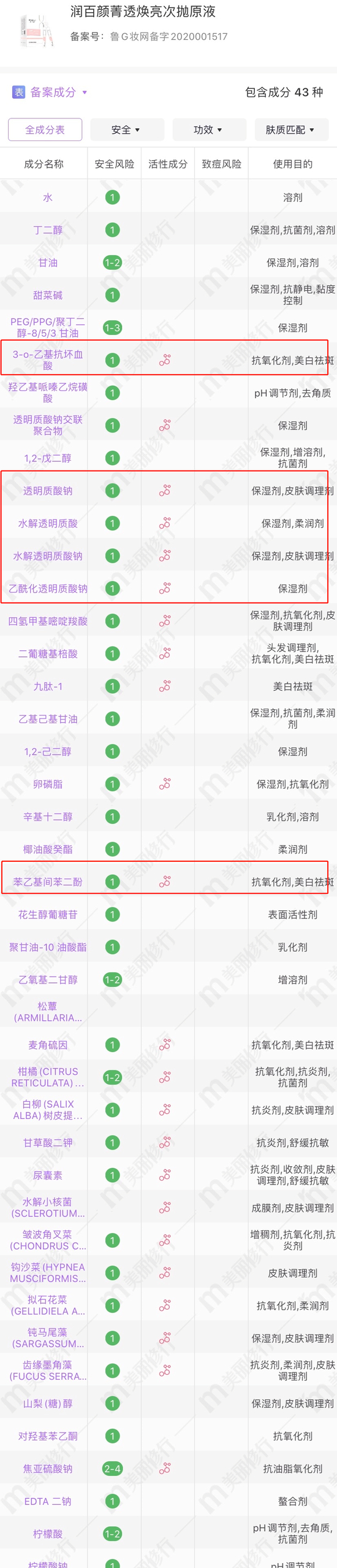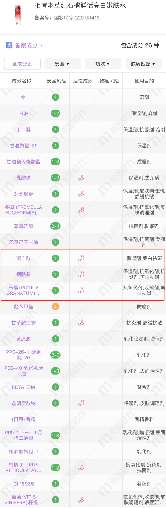 除了多种保湿剂成分和主打抗氧化的石榴果提取物,凝血酸和烟酰胺还能同时抑制酪氨酸酶活性,阻碍黑色素与肌肤角质的“热情交流”。像这样亮肤界的当红炸子鸡也被我们的国货“宠幸”啦!看叭,优质成分绝对不仅仅是国际大牌产品的标配,“国产护肤品牌的成分没有国际大牌好”的印象是时候该刷新一下啦!