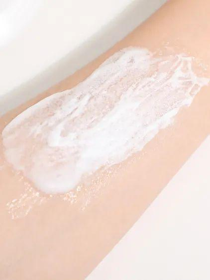 不光成分良心,磨砂膏的质地也很奈斯,在皮肤上推开就像是晶莹剔透的牛奶冰沙一样,有股淡淡的香草味,颗粒感并不明显,加水稍微按摩下就能打出丰富的细密泡沫,也不用担心按摩中会伤害脆弱的头皮。