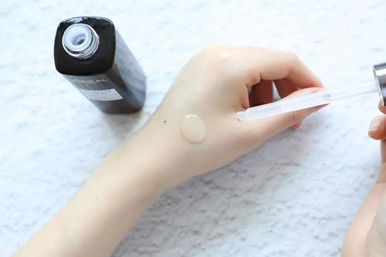 两款在质地上都是微乳白色的蛋清质地,欧莱雅黑精华稍浓一点,但总体上滋润又清透。两款都很好推开且吸收效果还不错!欧莱雅黑精华多添加了一种香精成分,因此香气稍稍浓于兰蔻小黑瓶。