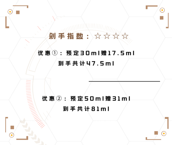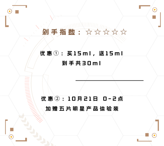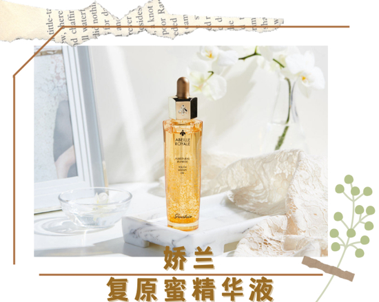 这支娇兰的复原蜜精华液用起来都挑不出毛病,主打的黑蜂蜂蜜+蜂王浆的配方,在滋润保湿和修护皮肤方面没有令我失望,再加上维E、六肽等成分的加持,改善肌肤纹路也是可圈可点。