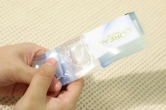 安瓶的瓶身是PVC材质,轻轻一掰就能掰开,质地则是流动性很强的油状。发膜则是乳霜一样的质地,因为安瓶要搭配发膜来用,所以套装里面还很贴心的准备了方便搅拌的小勺子。