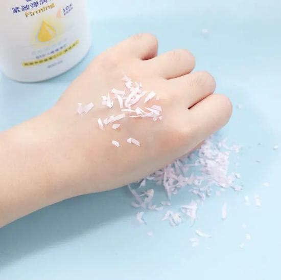 它主要的补水保湿成分是大小两种透明质酸,其中小分子透明质酸可以渗透到咱们的皮肤,给予肌肤水分。大分子透明质酸则起到一个守住水分的作用,它就像一层水膜一样,“附”在皮肤表面。一大一小,配合完美!