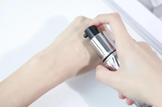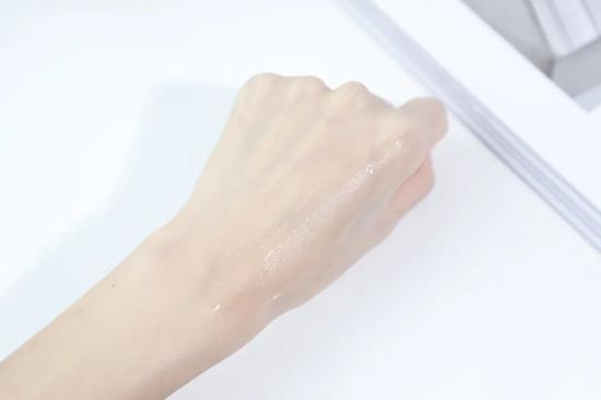 它的质地非常轻薄,像泉水一样,流动性也强,用手轻轻拍开,很快就被肌肤“吃”下去~