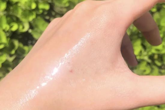 它是比较水润的淡黄色啫喱质地,流动性很强,刚上脸会有一丢丢厚重,稍微按摩一下很快就被吸收了。