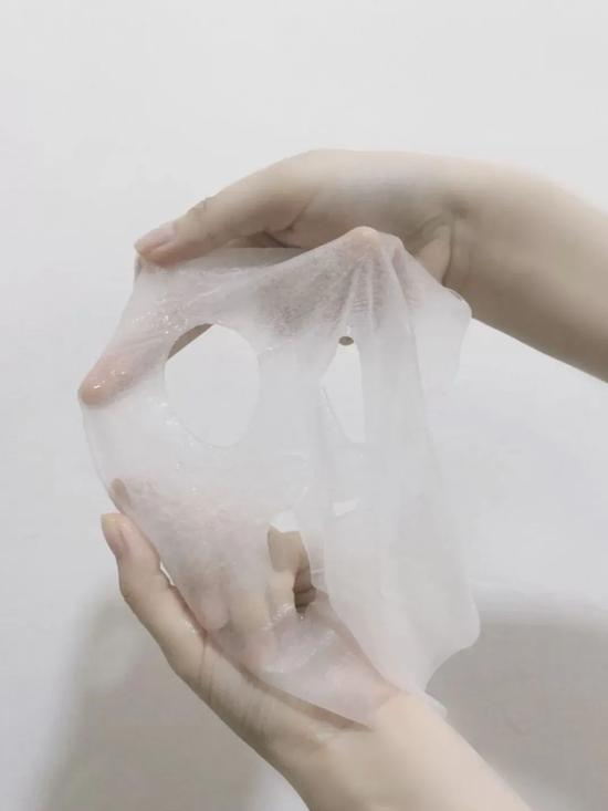 它的面膜纸薄薄的很服帖,延展性还不错,脸型偏长或者偏宽都能照顾到~精华不是很多,上脸精华液不会湿答答的往下滴,敷个15分钟完全足够了。