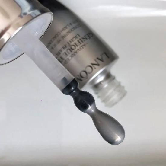 呈轻透的乳液质地,非常好推开,吸收速度也快。自己看的话可以发现乳液中有超级细腻的折射粒子,这也是为什么这款眼霜是测试下来,即时提亮效果最好的一款吧。